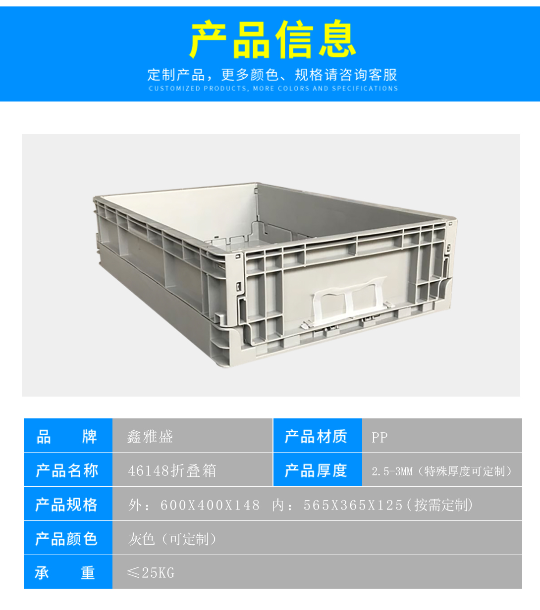 | 5 | 折疊箱 | 600*400*240 | 565*370*230 | EU4624 | 2457 |